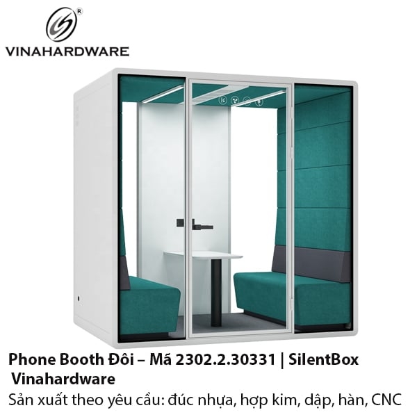 The Vinahardware SilentBox Double Phone Booth (Model 2302.2.30331) is a modular, soundproof workspace designed to create a quiet and private environment for two people.
