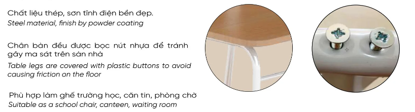 - Khung bàn sử dụng chất liệu thép sơn trắng chắc chắn, bền đẹp.