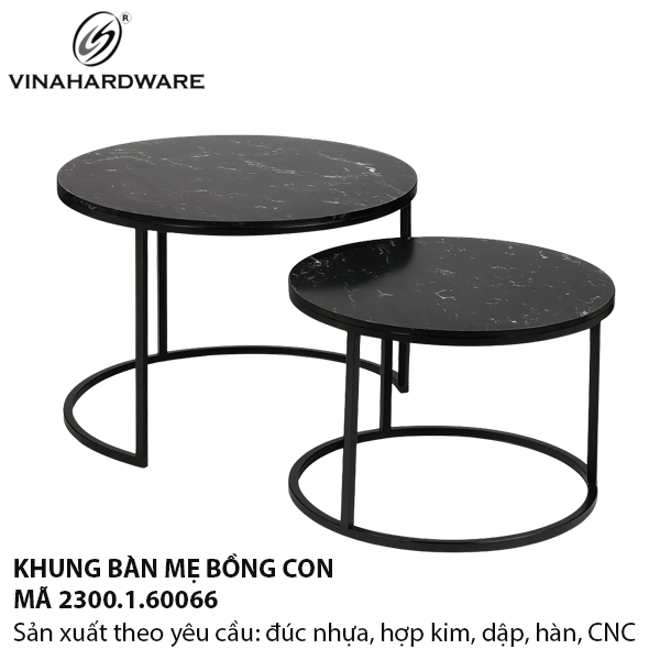 The VINAHARDWARE Round Table Frame 2300.1.60066 is designed with a modern nested “Mother and Child” structure, crafted from 20×20mm square steel tube and finished in a durable black electrostatic powder coating.