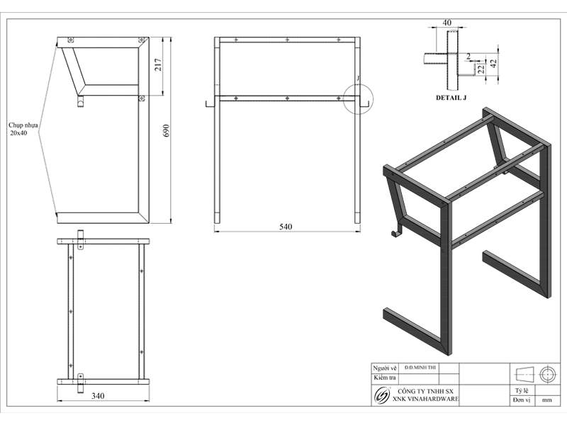 Frame material: 20 × 40 mm rectangular steel tube (typ. thickness 1.2–2.0 mm)