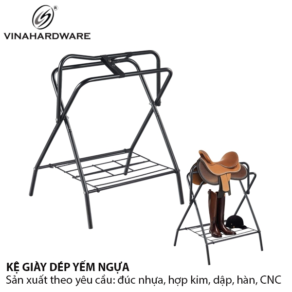 The Metal Saddle & Boot Rack 2302.1.64006 by Vinahardware is a professional steel storage solution designed for horse farms, equestrian clubs, training centers, equipment rooms, and hospitality projects. This rack provides an efficient and organized way to store horse saddles (pads) and riding boots while maintaining product shape and durability over time.