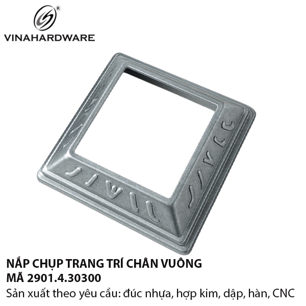 The Vinahardware Decorative End Cover (Model 2901.4.30300) is a precision-stamped steel cap designed to cover and protect the base joints of square tube posts, legs, and frames.