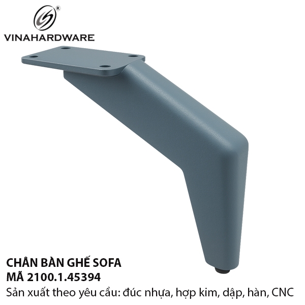 The Vinahardware Sofa Leg (Model 2100.1.45394) features a modern angled shape, precision-fabricated from 2.0mm thick steel plate, providing excellent load-bearing capacity and aesthetic appeal.