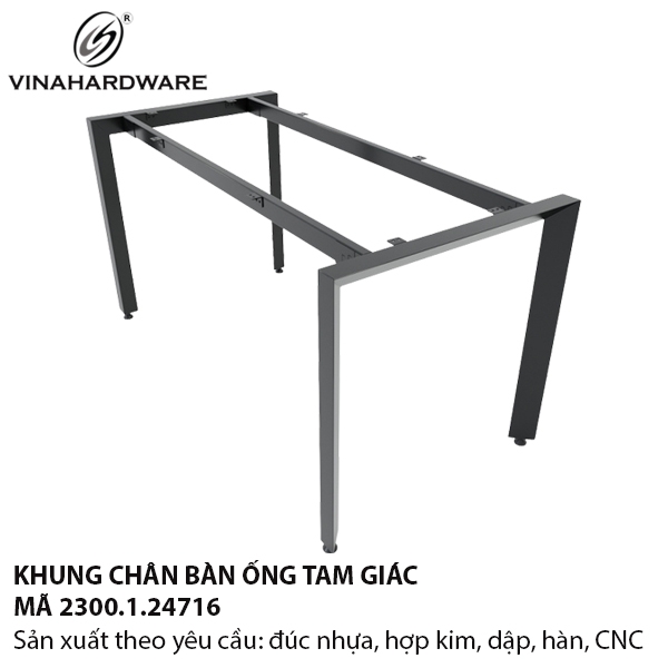 The Vinahardware Triangular Tube Table Frame (Model 2300.1.07200) is a modern and sturdy steel structure designed for office desks, dining tables, and commercial furniture projects.