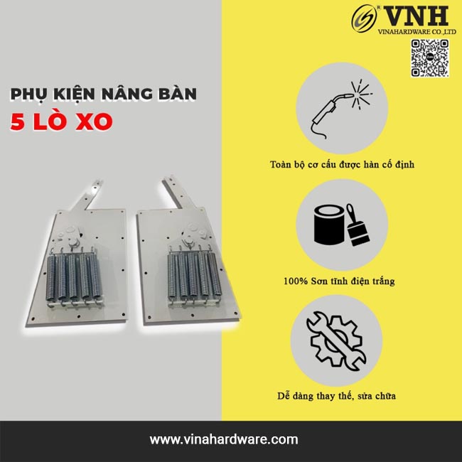 Vinahardware is pleased to introduce two popular product lines, widely favored by factory workers, especially in smart residential projects: bed accessories and integrated folding desk. While both product lines share similarities in design and functionality, they differ in their essence. The bed accessory set is designed to withstand the weight of the bed frame, thus having larger dimensions and thicker steel components, including 8 springs. On the other hand, the integrated folding desk accessories feature thinner steel components and 5 springs.